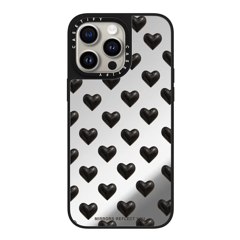 -Elevate your device with this protective and stylish mirror case, featuring a top-quality build and a delightful pattern of small black hearts.