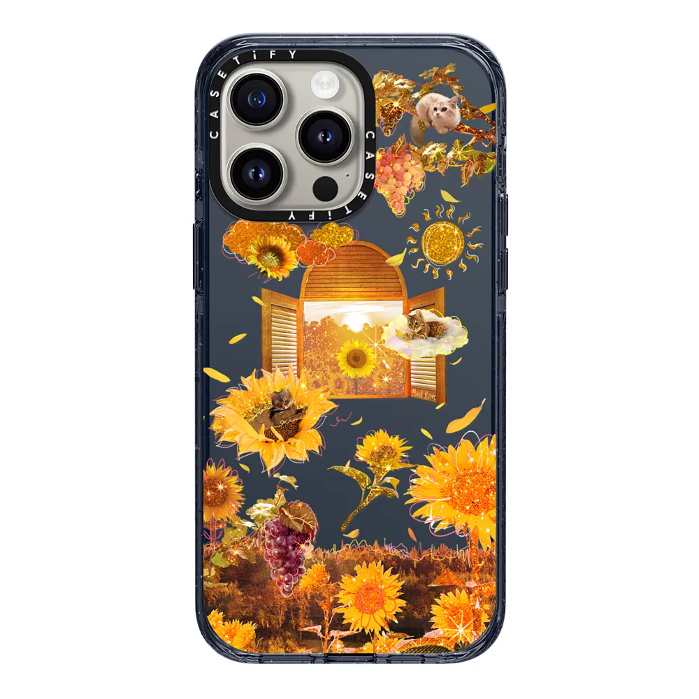 -Elevate your device with the golden charm of our Golden Hour Case, featuring a transparent design adorned with vibrant sunflowers.