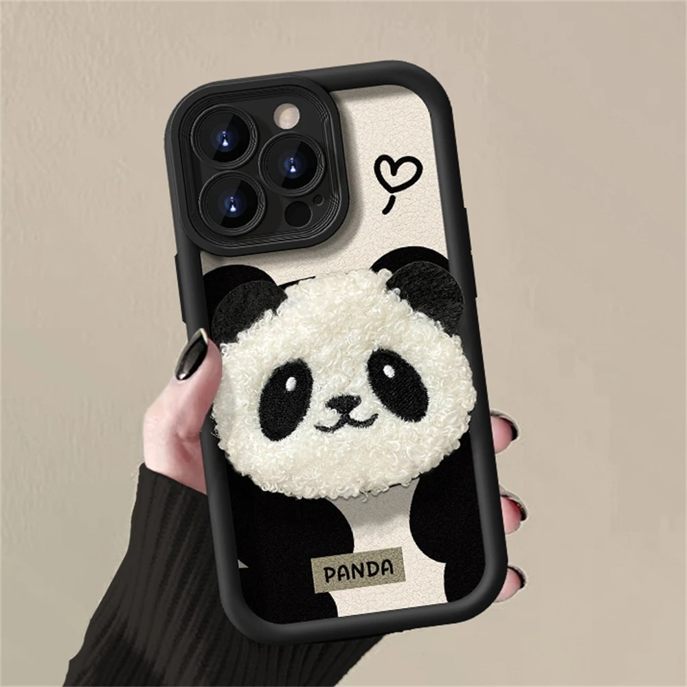 -3D Panda Plush case, crafted from soft silicone and leather plush for camera protection, offering an irresistibly cute appearance.