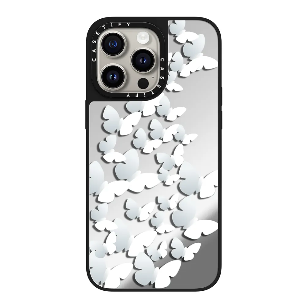 -Presenting our Mirror Case, featuring a mesmerizing display of paper butterflies fluttering freely, adding a touch of whimsy to your device.