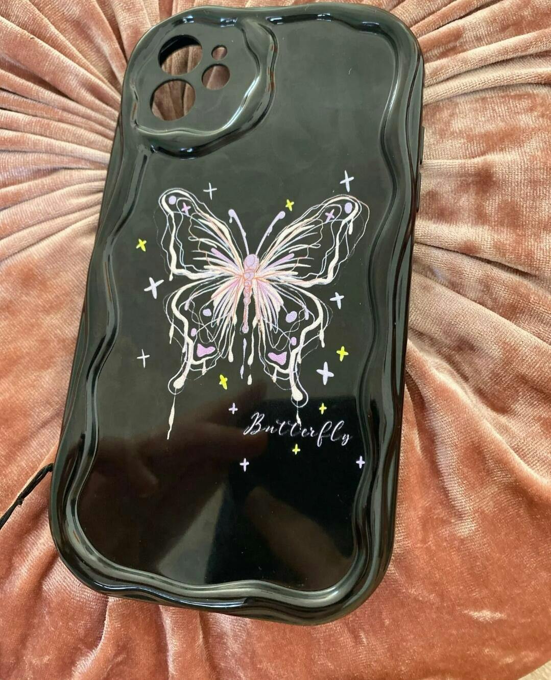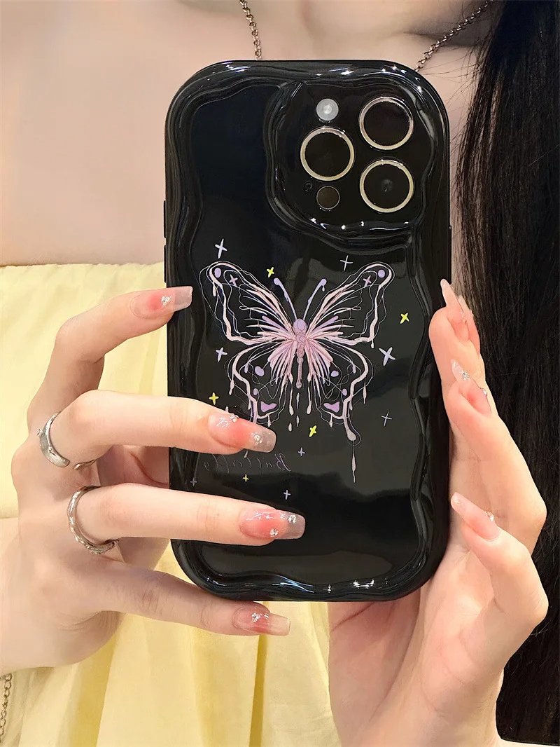 -Elevate your device’s style with our Black Glossy Case adorned with a delicate pink butterfly print and wavy border.