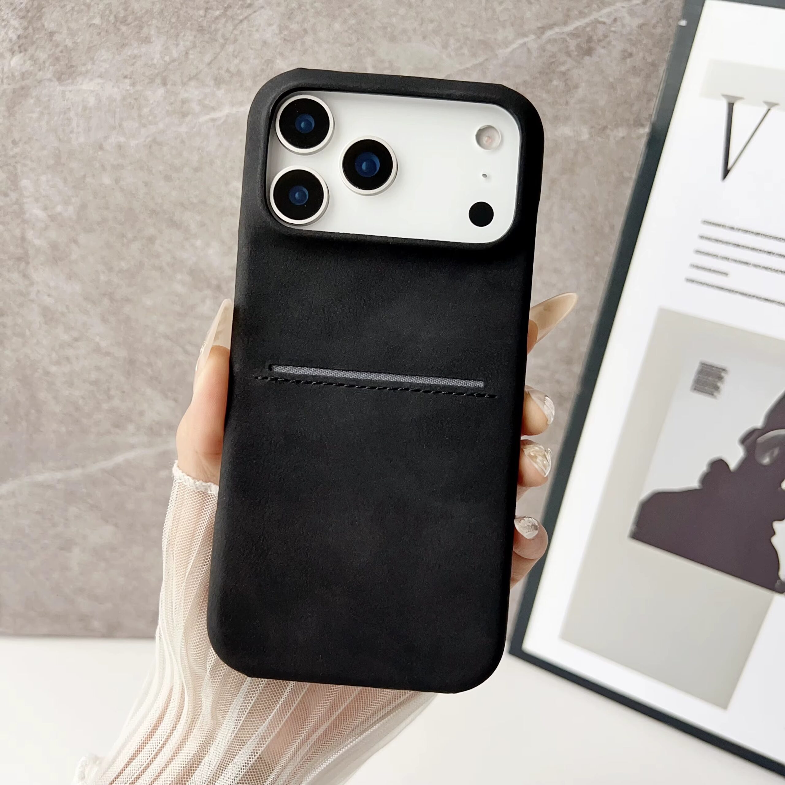 Keep your essentials close and your phone protected with a case that blends style, function, and everyday convenience. Crafted with soft frosted PC material and a luxurious sheep leather insert, this case gives your device a premium feel while adding subtle elegance.