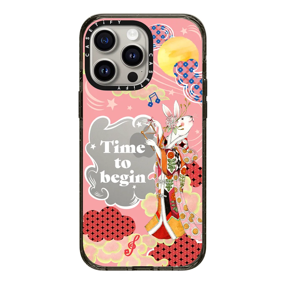 -Captivating pink print, moon, wind, and a dancing rabbit in a transparent case.